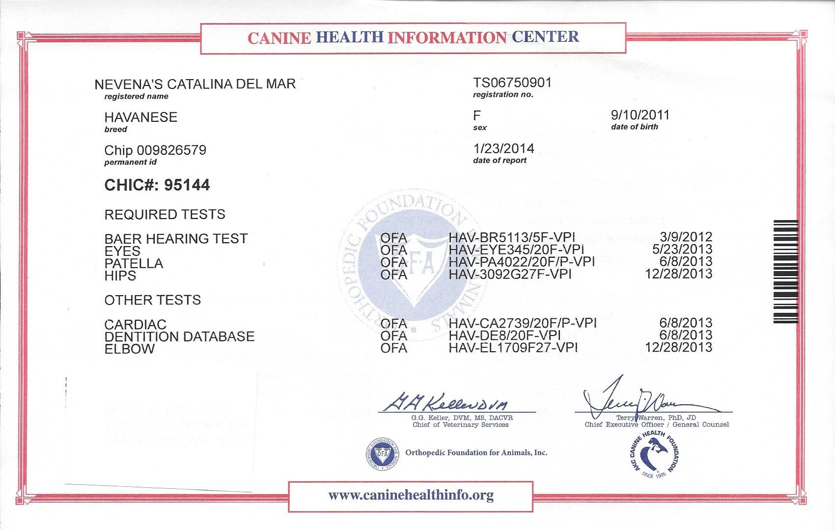 PEDIGREE OF NEVENA'S CATALINA DEL MAR