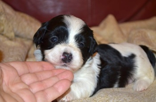 | CH Lil Paradise's Bella Donna (USA) Black Irish Pied |